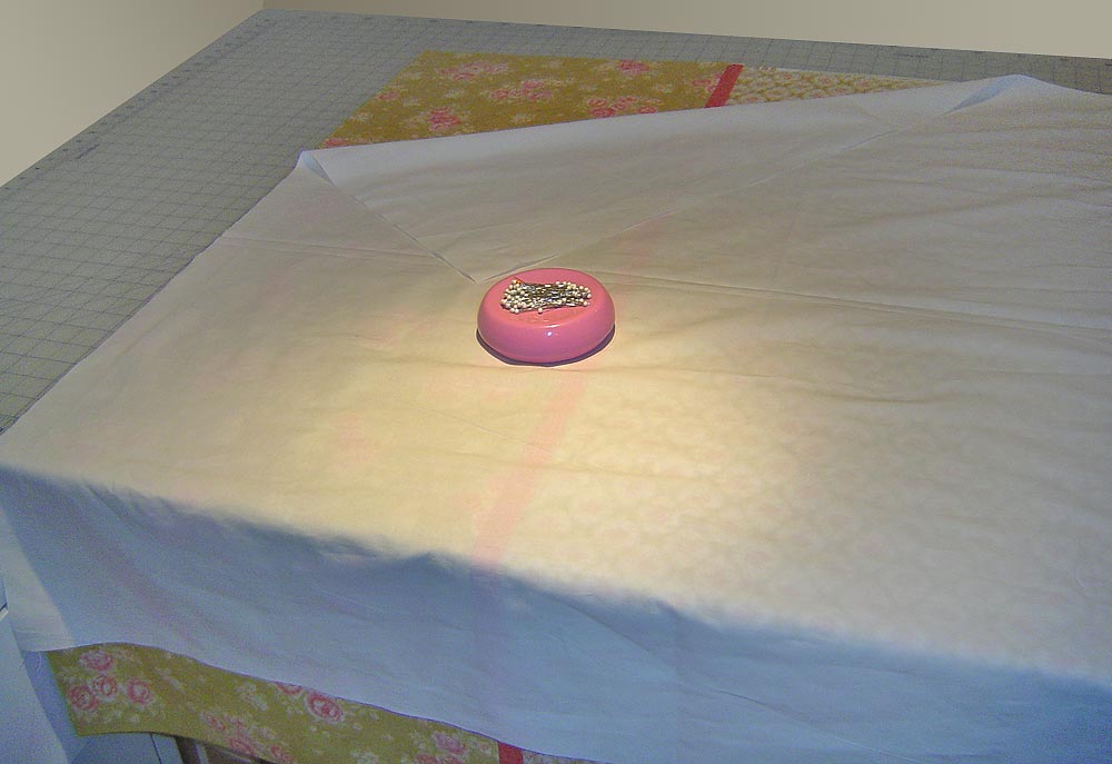 17. Press the side seam allowances towards the outside edges. Pin in place along the top.