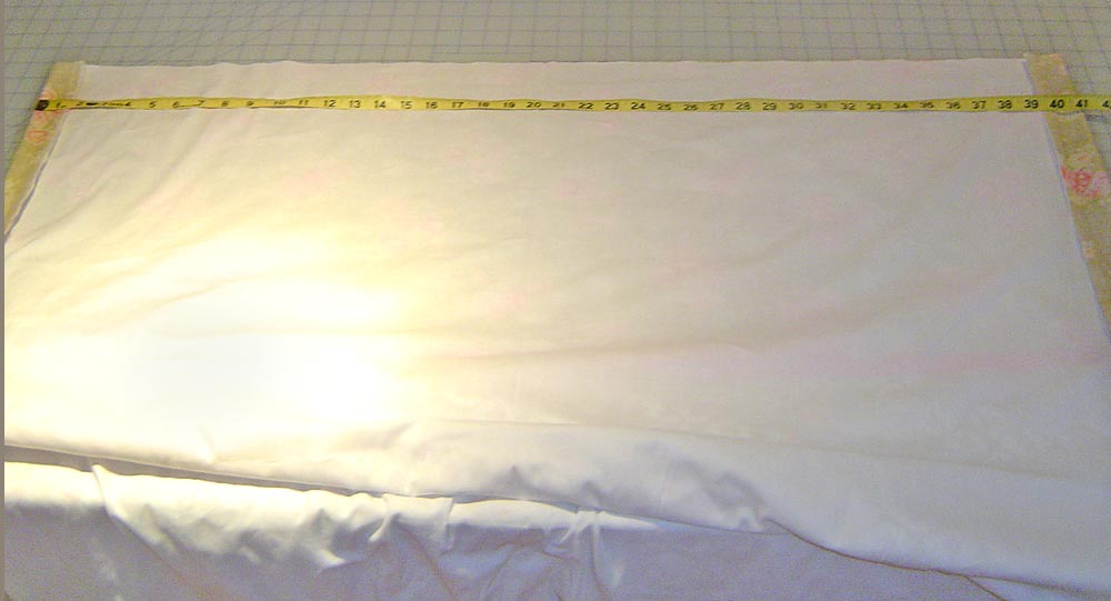 16. Smooth the panel flat. Use your measuring tape to make sure your side hems are even. To get our 41″ finished width, our side hems were each about 1½”.