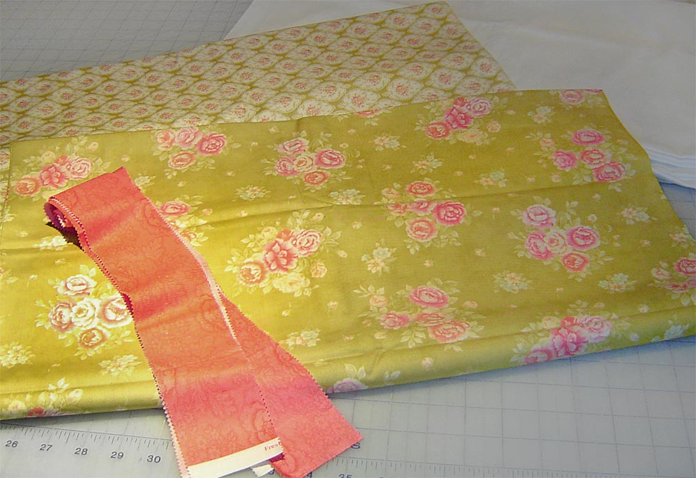 • Jelly Roll for flange (we used just one of the forty 2½” x 44″ strips in the standard Jelly Roll; if you choose not to use a Jelly Roll, you’ll need to cut one 2½” x 44″ strip from your chosen fabric): we used Joanna Figueroa’s Fresh Cottons Jelly Roll by Fig Tree Quilts for Moda Fabrics in Coral Rose Crisp Rose