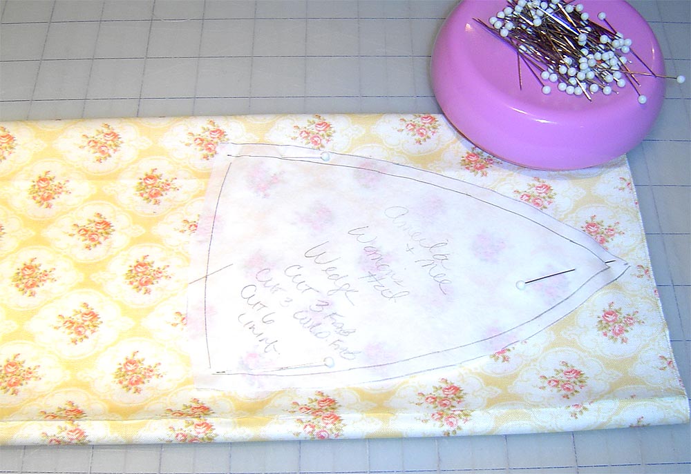 - Trace the pieces from the pattern and add a ¼” seam allowance around the wedge piece and brim. We recommend making notes on each pattern piece so you know how many you need to cut, such ‘Cut (3) wedges from first fabric.’
