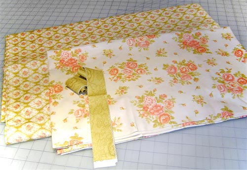 - 1½ yards 44-45″ fabric for pillowcase body: we used Joanna Figueroa’s Fresh Cottons Bouquet in Chantilly Cream by Fig Tree Quilts for Moda Fabrics