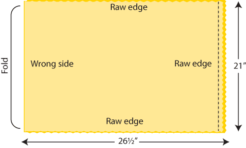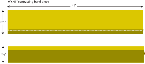 - Fold the 9″ x 41″ trim piece in half, right sides together, so it is now: 9″ x 20½”.