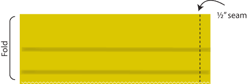- Press a double-fold hem along this finished edge. Turn up the edge ½” and press, then turn up another 4″ and press again.