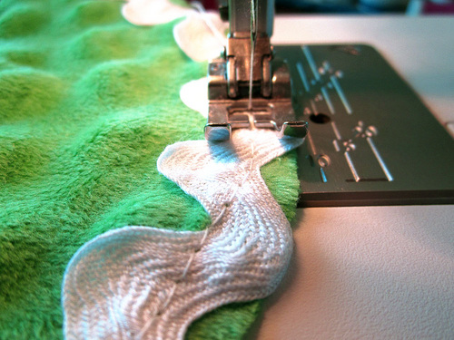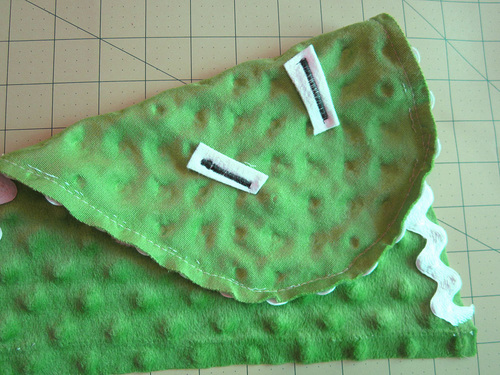 - Machine baste in place, being extremely careful to keep your stitching at an exact ½” seam allowance. You want a full “wave” of the rick rack to show from the seam to create the croc’s teeth. You don’t want him to look like he needs braces.
