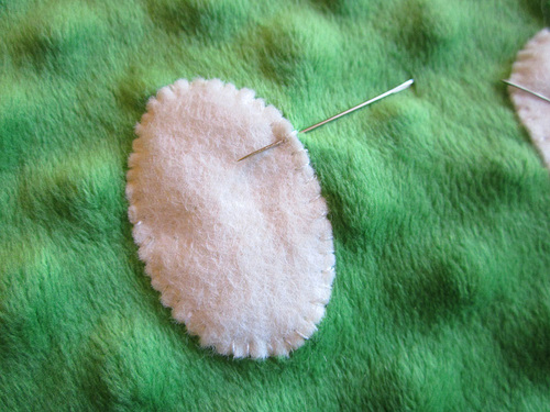 - Hand stitch the felt ovals in place with tiny, careful stitches. You could machine stitch in place if you prefer, using a tight satin stitch.