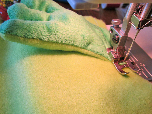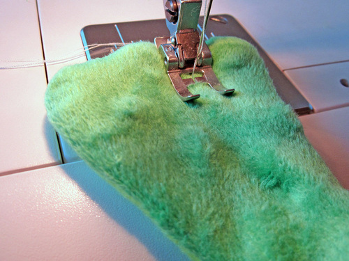 - Stitch a short seam, approximately ¾ – 1″ from the end of the foot up, to create three toe “divisions.”