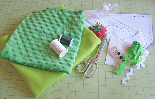 - ½ yard of 60″ solid fleece for the bottom of the croc (body and feet); we originally used Shannon Solid Cuddle 3 in Dark Lime