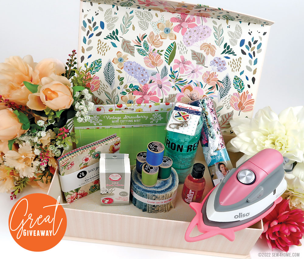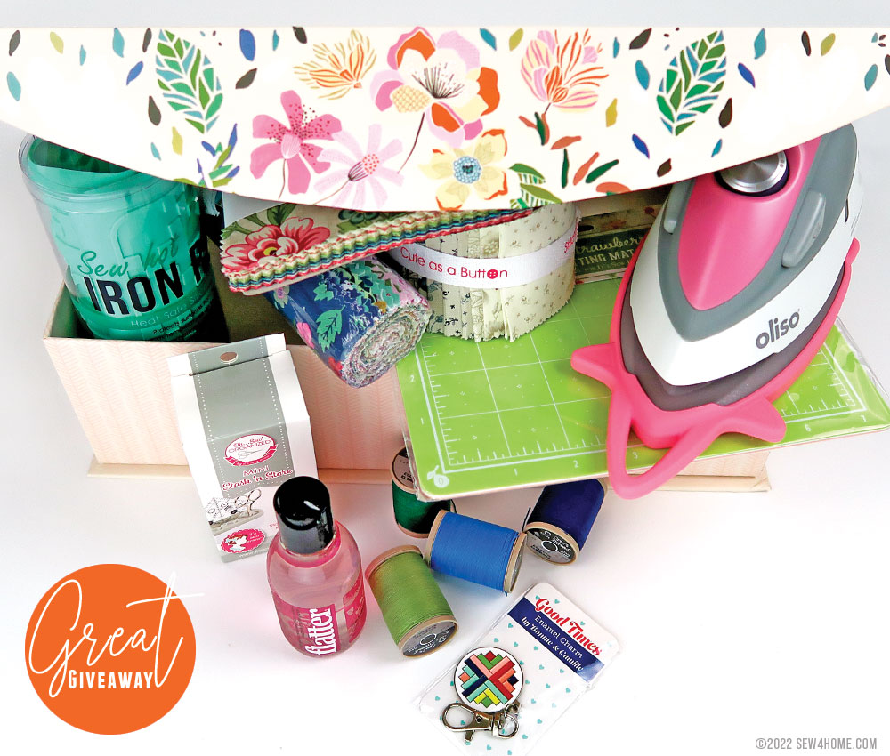 As a very special thank you to all our friends and followers, we’ve put together an amazing Great Giveaway package. ONE lucky S4H enthusiast will win a boxful of sewing and craft wonderfulness, courtesy of several of our incredible sponsors: Fat Quarter Shop, It’s Sew Emma, Oliso, and Coats.