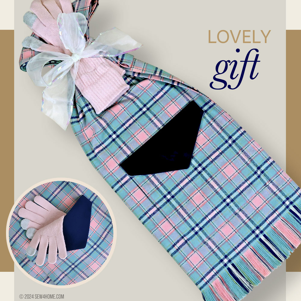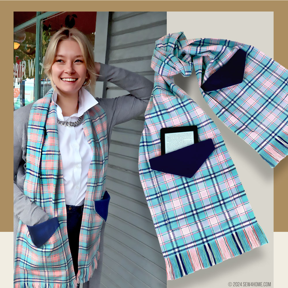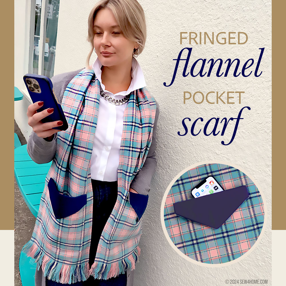 Get two winter warm-ups in one easy project: a soft, fringed flannel scarf with built-in pockets at each end to keep your hands toasty. We worked with our friends at Janome America to develop a project that is perfect for anyone just starting out on their sewing journey. If you’re already a pro, it’s a fast and easy wearable for yourself or as a gift, and a wonderful option if you’re teaching someone to sew.