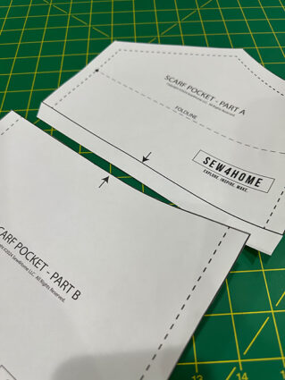 - Aligning the printed arrows, tape together Part A and Part B to form the complete Pocket pattern.