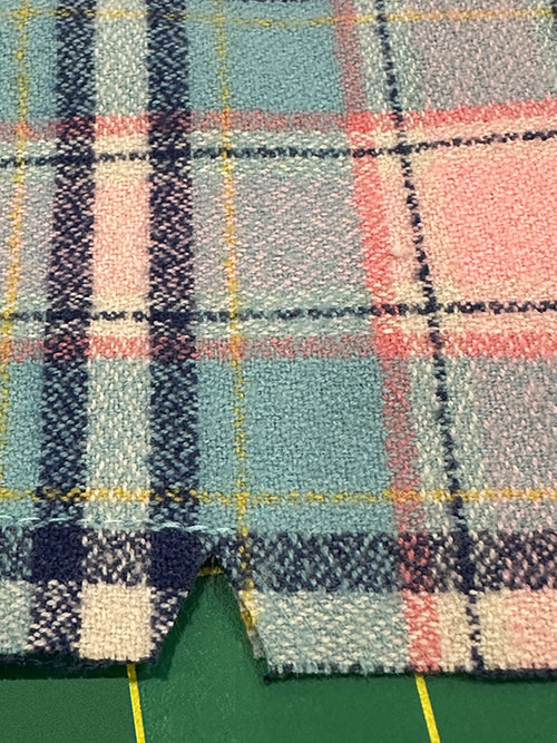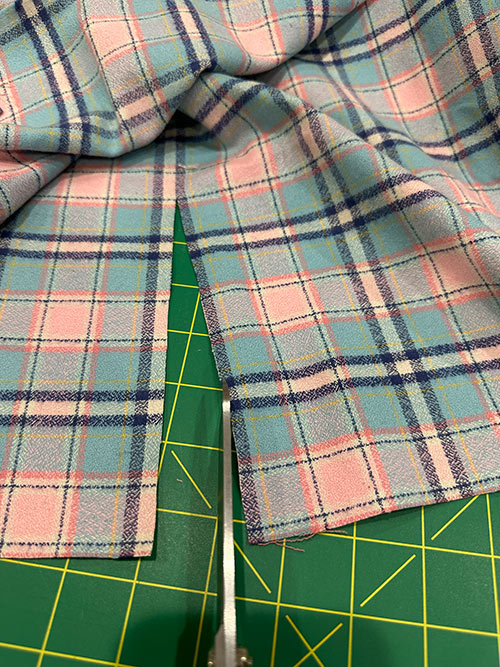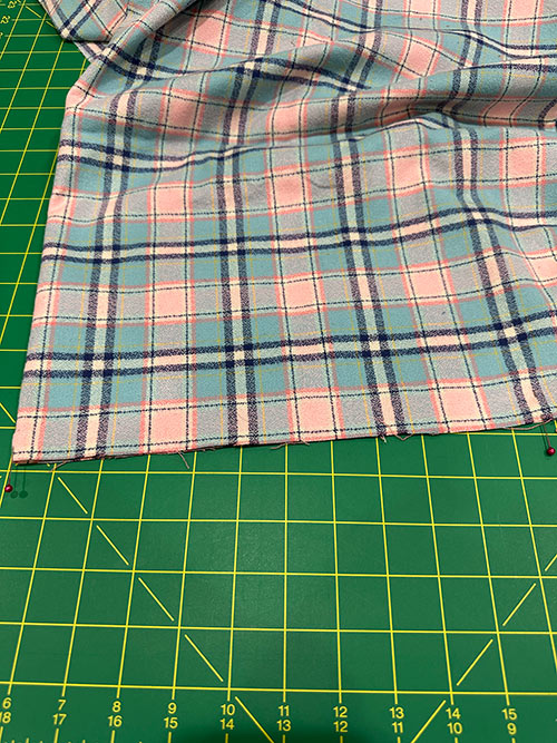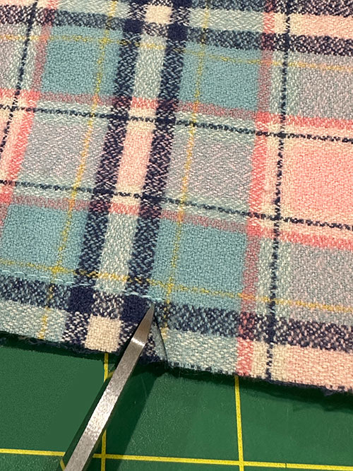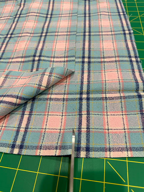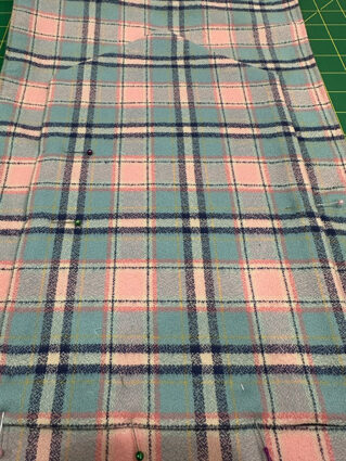 - The final main panel step, now that you have the correct width, is to trim down the length to 72”. You want both ends of the scarf to look the same, so adjust your top and bottom cuts as needed to achieve that plaid match.
