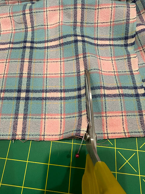 - Yes, cutting with scissors is recommended. With plaids, it’s so important to keep everything in line with the woven motif. A rotary cutter, even in experienced hands, can wiggle and wobble a bit over long cuts. We don’t want that!