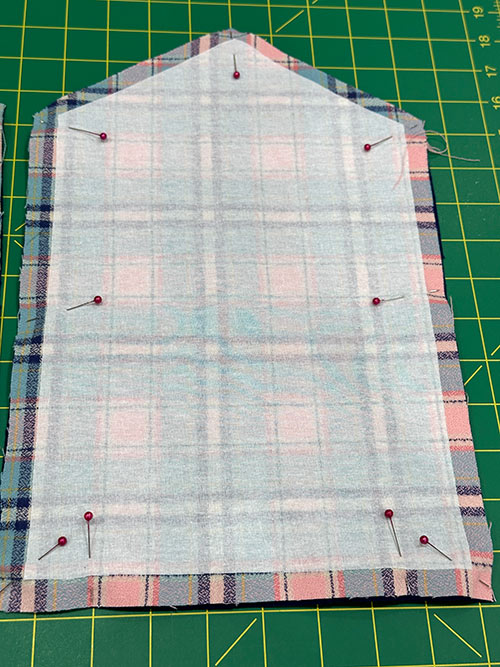 - From the solid flannel fabric, use the assembled pocket pattern to cut TWO.
