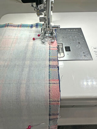 - Edgestitch along the seamed edge, starting at your top 2½” point and going straight down the side.