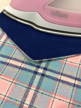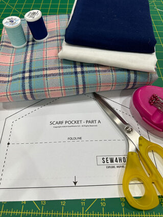 There is a downloadable pattern for the patch pockets with their pretty pointed flaps. To make the most of the contrasting pocket fold over, look for one of the darker colors within your fabric to use as an accent. We pulled out the navy from within our plaid.
