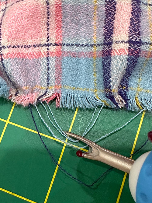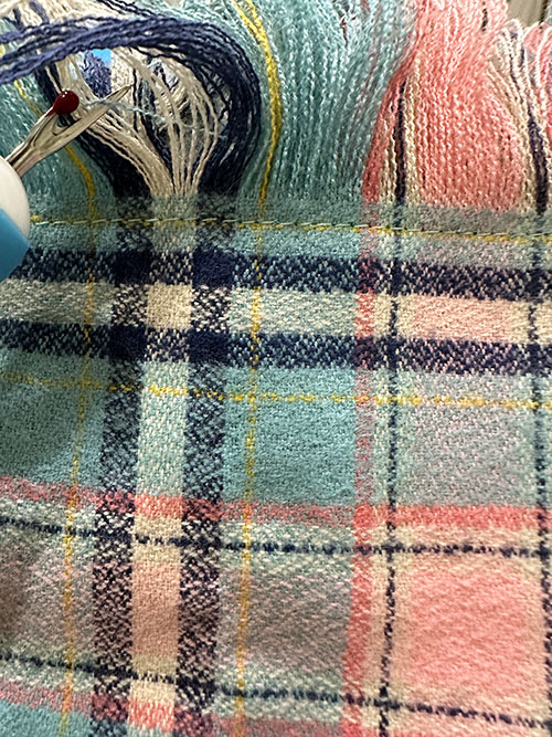 - When done, shake out the stray threads and press flat. You can then fluff and straighten the fringe with your fingernails or a fine comb.