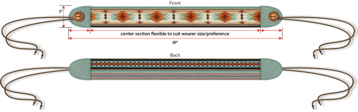 This is just one of the ways to vary the size and embellishment options for this belt design. Our sample belt finished at 3″ wide x 30″ long. The double ties at each end are approximately 16″ long. This is considered a medium size and fit our slim model well. Adjust the length accordingly for your size and shape, testing the wrap with a flexible tape measure to get the best fit
