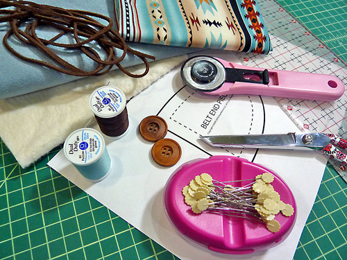 - Scrap or ¼ – ½ yard of 44″+ wide standard weight cotton for the center of the belt (front and back)