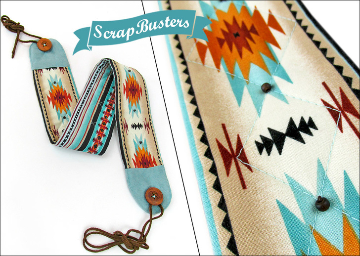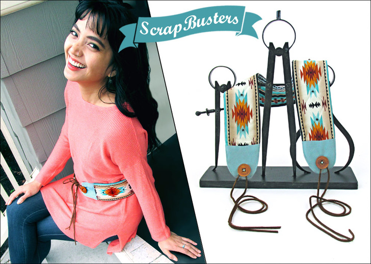 To match our look, we recommend a fabric with a strong horizontal motif. Our chosen fabric (Tucson Desert Stripe in Light Turquoise from Elizabeth Studios) was diverse enough to fussy cut two unique strips from within just one half yard cut, making the front and back of our belt appear to have been made from two different fabrics