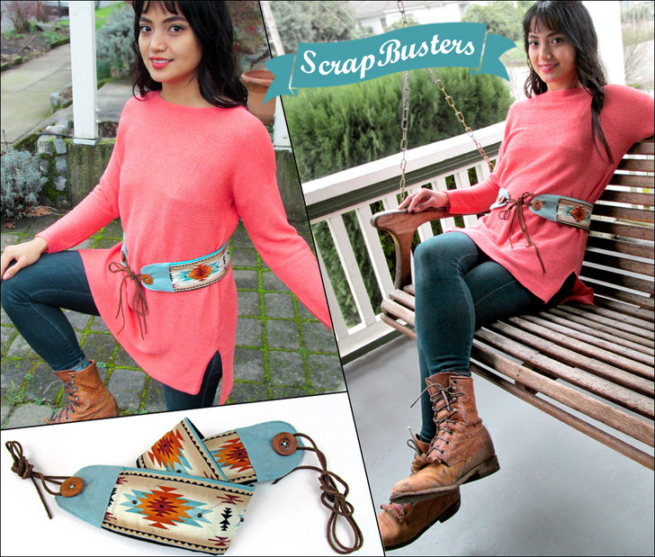 Traditional obi belts often wrap twice around the waist; we opted for a modified style with suede accent ties in the front. However, if you’d like to achieve an overlap loop, simply extend the center portion so it’s long enough to wrap around more than once.