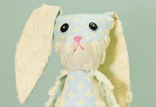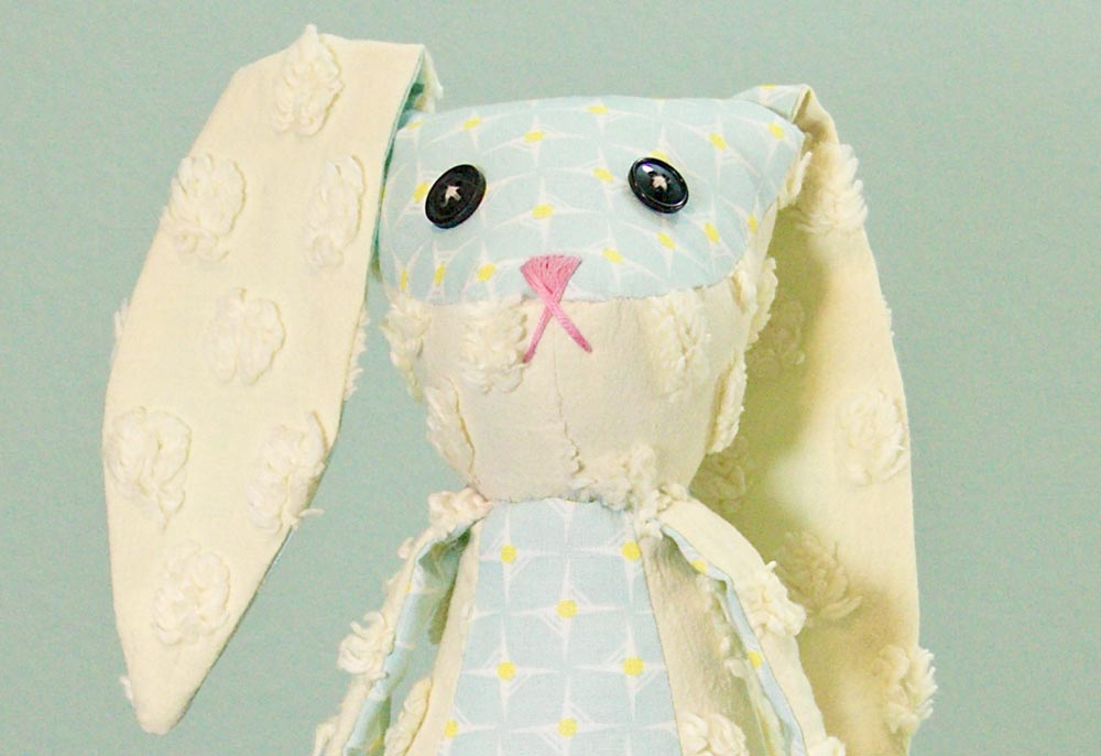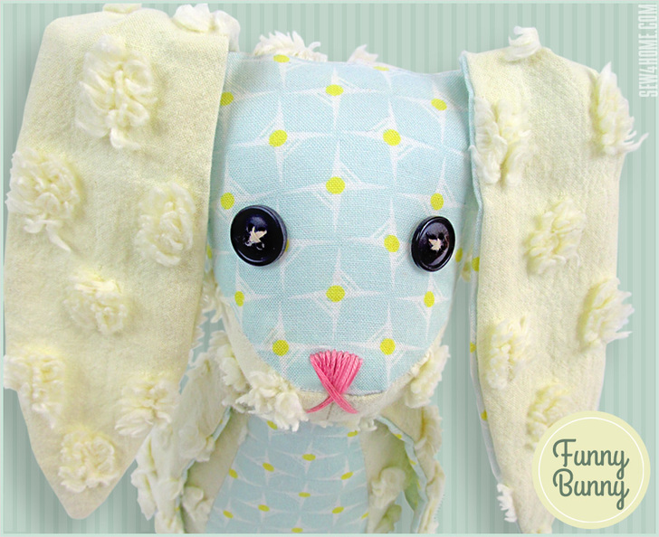 Stuffed animals make me happy. They live on my desk at home and in the S4H studios, so I can glance over at them when I’m having a bad day or when someone has shot down another one of my ‘spectacular’ ideas. There they sit. Always calm, always smiling. Funny Bunny is a super sweet softie who combines nubby cotton chenille with smooth, retro-inspired cotton for a soft vintage look.