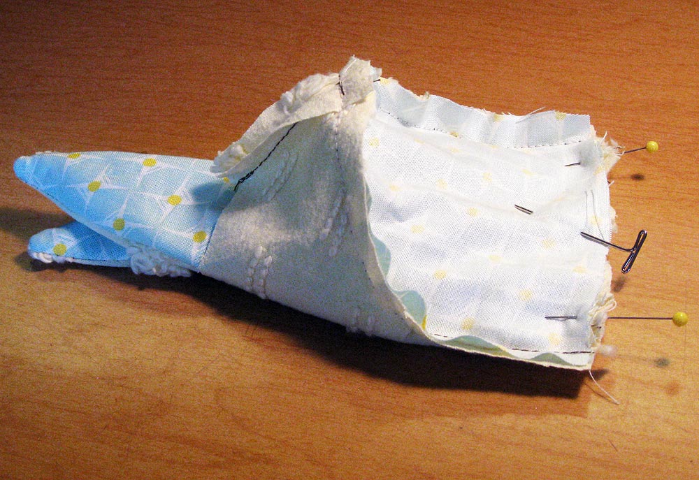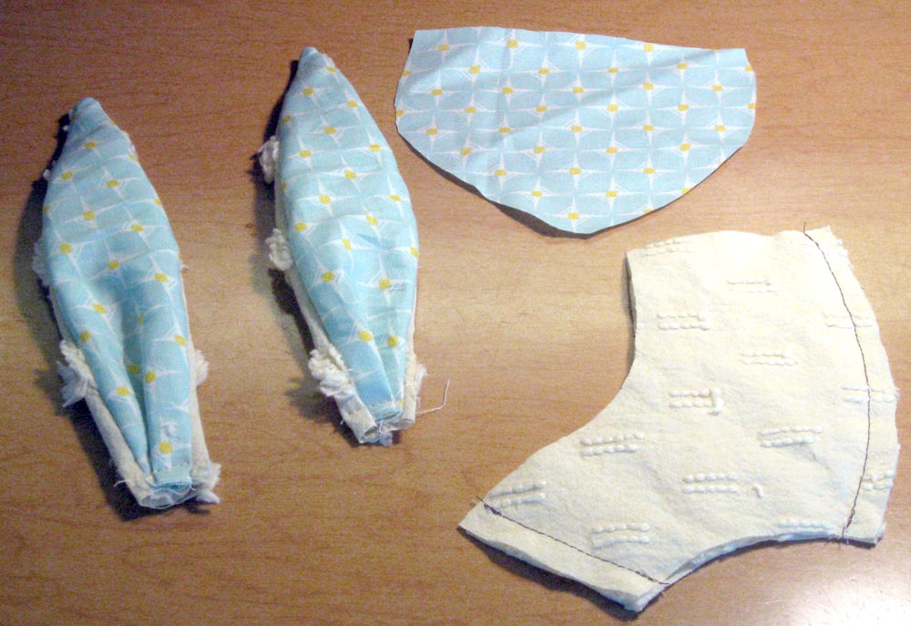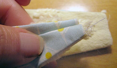 - Find the two 3″ x 5″ rectangles of cotton you cut for the legs.