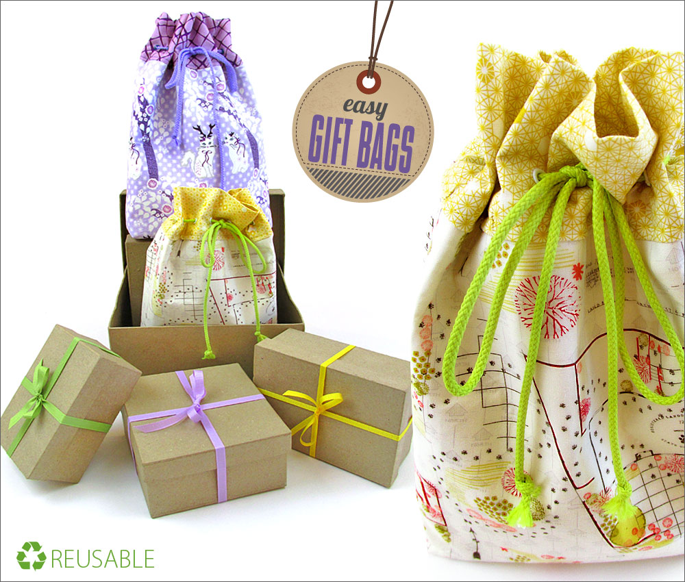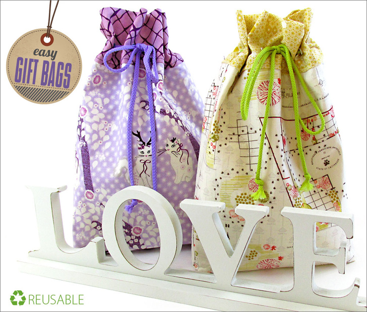 It’s this background of recycling and re-use that leads to our various gift bag tutorials. They’re a perfect way to avoid wrapping paper entirely, instead creating a reusable bag that’s almost as much fun as the present inside – especially when made with lovely fabric combinations.
