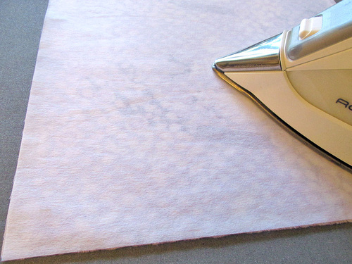 - Following manufacturer’s instructions, fuse one piece of interfacing to the wrong side of all four main fabric rectangles (the two exterior and the two lining pieces). The accent band does not get interfacing.