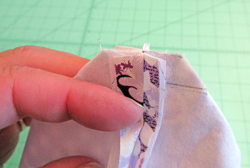 - Test the fit of the loop to the top of the bag. If for any reason, the band does not lay flat and smooth against the body of the bag, rip out the seam and adjust it slightly larger or smaller to get a good fit.