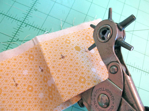 NOTE: You could use tiny scissors or an awl to make the eyelet holes, but a leather punch, what we chose, provides the cleanest, most uniform cut.