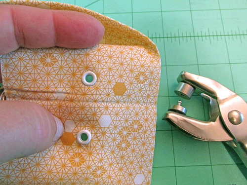 We changed up the look of the standard closure with an eyelet-threaded drawstring. It looks super stylish but is actually super easy. The Dritz eyelets we used come in assorted colors, which is a fun way to up the embellishment factor.