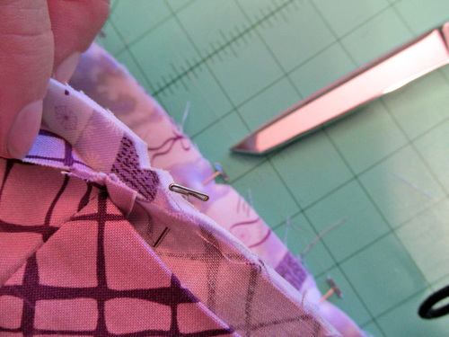 - Pin this folded edge in place all the way around. Make sure you have covered the seam on the inside evenly.