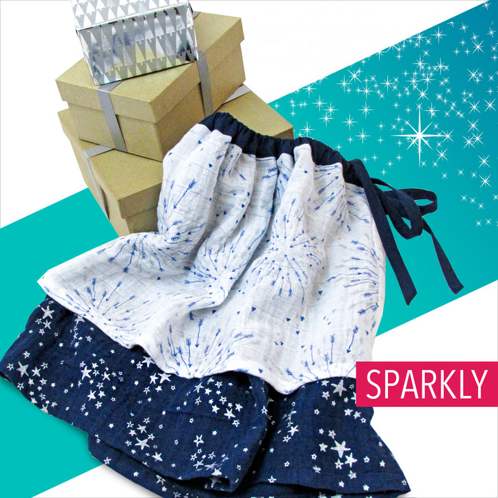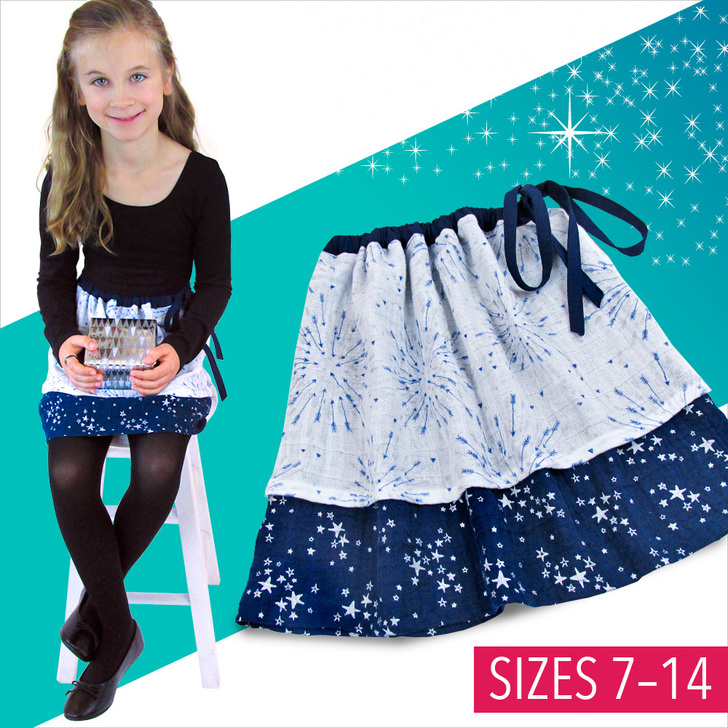 Is there a little girl in your life who needs a bit of party sparkle? Our sweet skirt features two layers of Embrace® Metallic Double Gauze from Shannon Fabrics. We include a chart for sizing from 7 to 14. The panels are all simple straight cuts so it’s easy to adjust to various shapes and sizes. The project goes together in a snap; make one or more in a single afternoon.