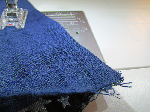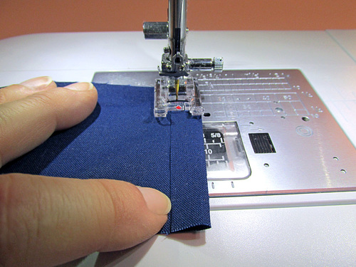 - Re-set the stitch length to normal. Edgestitch the folded ends in place.