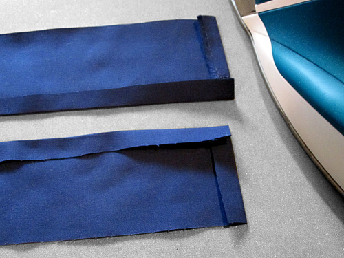 - Press each tie in half, wrong sides together, and press to set a center crease line.