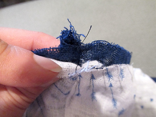 - Pull the tie all the way through and even up the ends as they extend from the casing above the side seam.