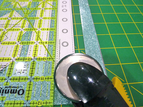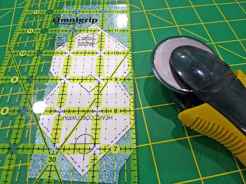 - Using your see-through ruler and rotary cutter, slice right along the pattern template.