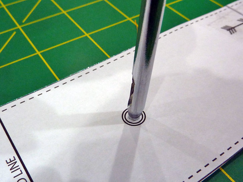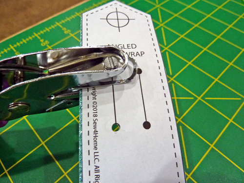 - Replace the pattern template and use the printed marks as a guide. You can use a Dritz Rivet Tool (one of our favorites for cutting holes), an awl or a mini hole punch.