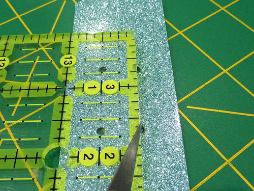 - Then use the X-Acto knife to slice a vertical slit between each two holes.