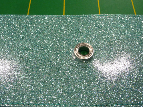 - Insert the one part through the hole. We think both sides of these Dritz 2-Part eyelets are quite nice looking and either side can be the “right” side. The smooth side is a bit more low-profile and so for these Sparkly Things, we felt that smooth side was best on the inside of the various elements. The choice is really up to you, but whatever you decide, insert the the back half stud through the vinyl from back to front.