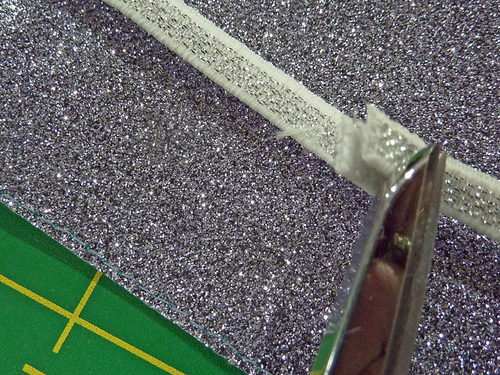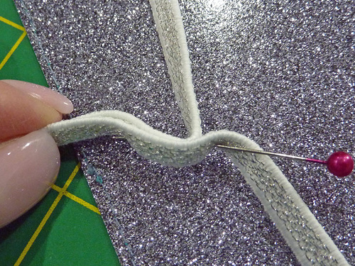 - Find the length of Dritz Metallic Elastic. Trim it down to 12”.