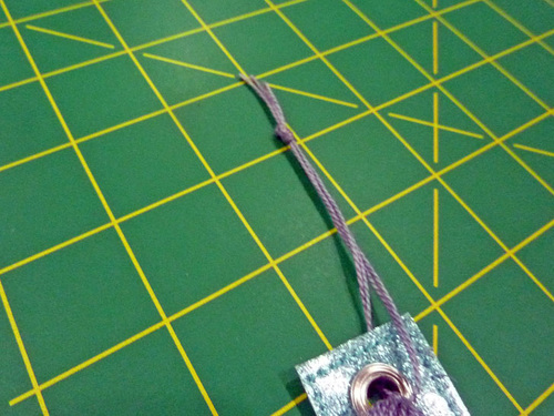 - Thread the tassel’s hanger ties through the eyelet and tie off the ends.