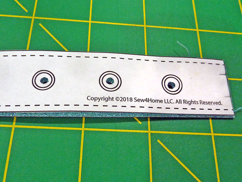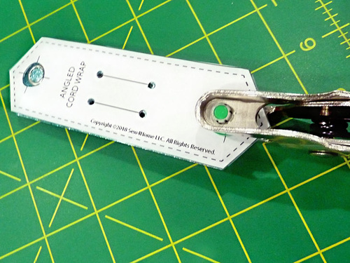 - As above with the other elements, it’s easiest to leave the template tape in place to cut the holes and insert the Dritz 2-Part Eyelets. This guarantees the most accurate placement.