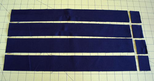 FOUR 1⅜ wide x 2” blocks for the zipper end tabs – this width was sized to fit our zipper width; measure your zipper and adjust the width as necessary