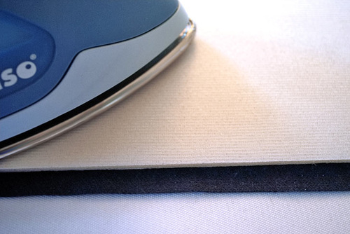 - Unfold so the crease line is visible, using it to align the interfacing. Following manufacturer’s instructions, fuse in place.