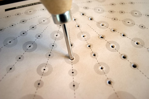- Make sure you make a hole at the center point for every insertion point. It is okay if the awl goes through and pierces the canvas.