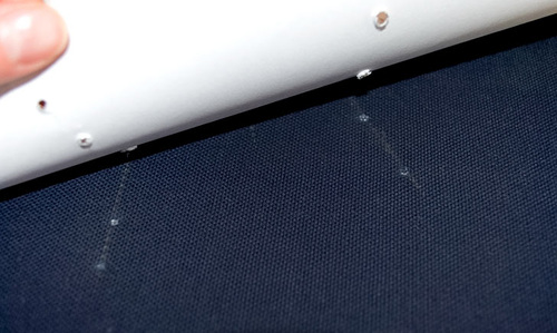 - Remove the handle and use the marks to cut holes in the bag. We found it easiest to start the hole with an Awl and finish with the Cutting Tool.