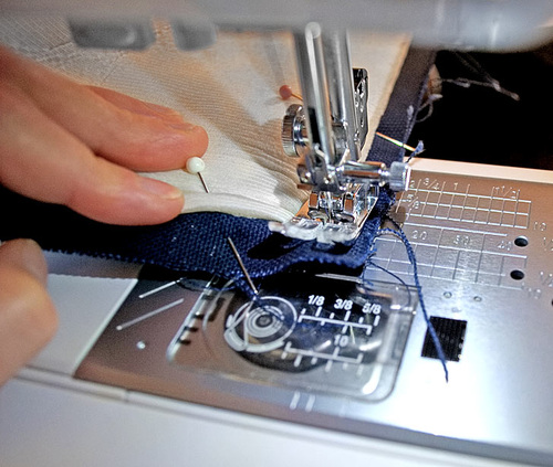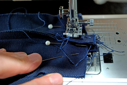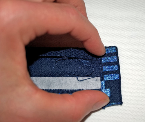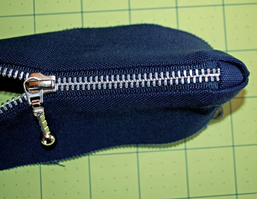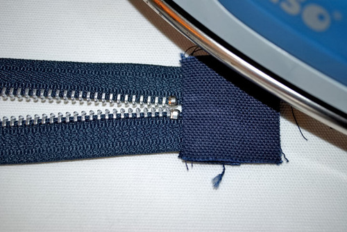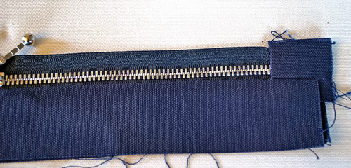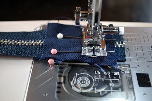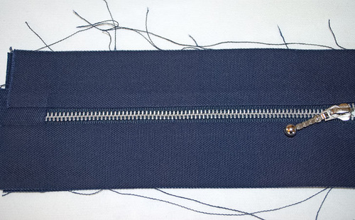 - Stitch in place through all the layers, and just as above, press away from the zipper teeth.