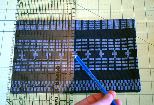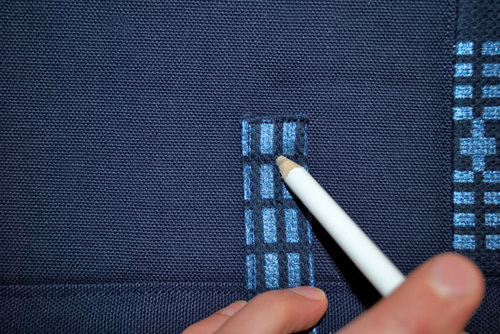 - Insert the tip of a marking pen or pencil through each of the holes to make a dot along the lines on the fabric below.
