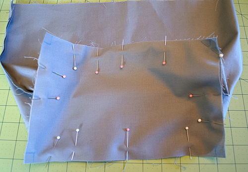 - The ends of the zipper should sit at the center of the side panels. When pinning in place, it’s best to start at the corners and pin into the center of the front and back panels.